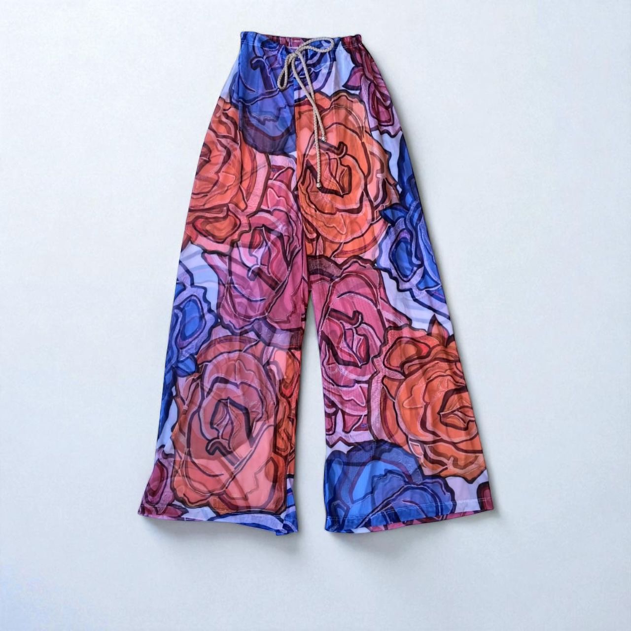 Este pantalón fluido está confeccionado en mallatex de alta calidad, con diseños únicos y exclusivos producidos en Colombia. Su estampado sublimado destaca por su arte y originalidad, creando una prenda versátil y ligera que se adapta a tu estilo.