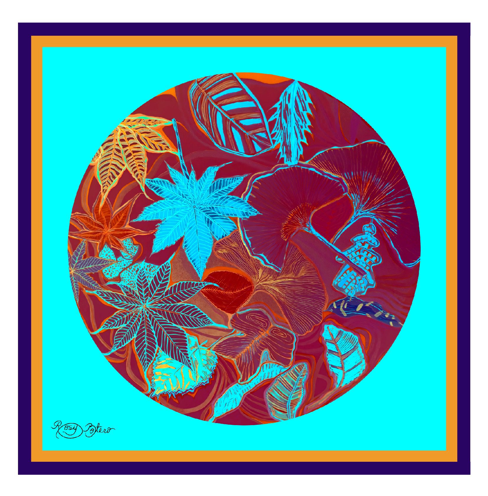 Pañuelo en seda mango con diseño único y exclusivo 70x70cm: el toque chic que transforma cualquier look.