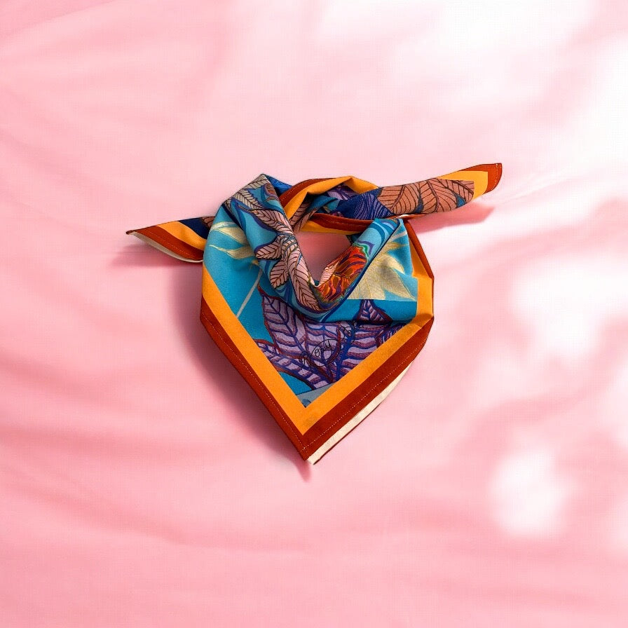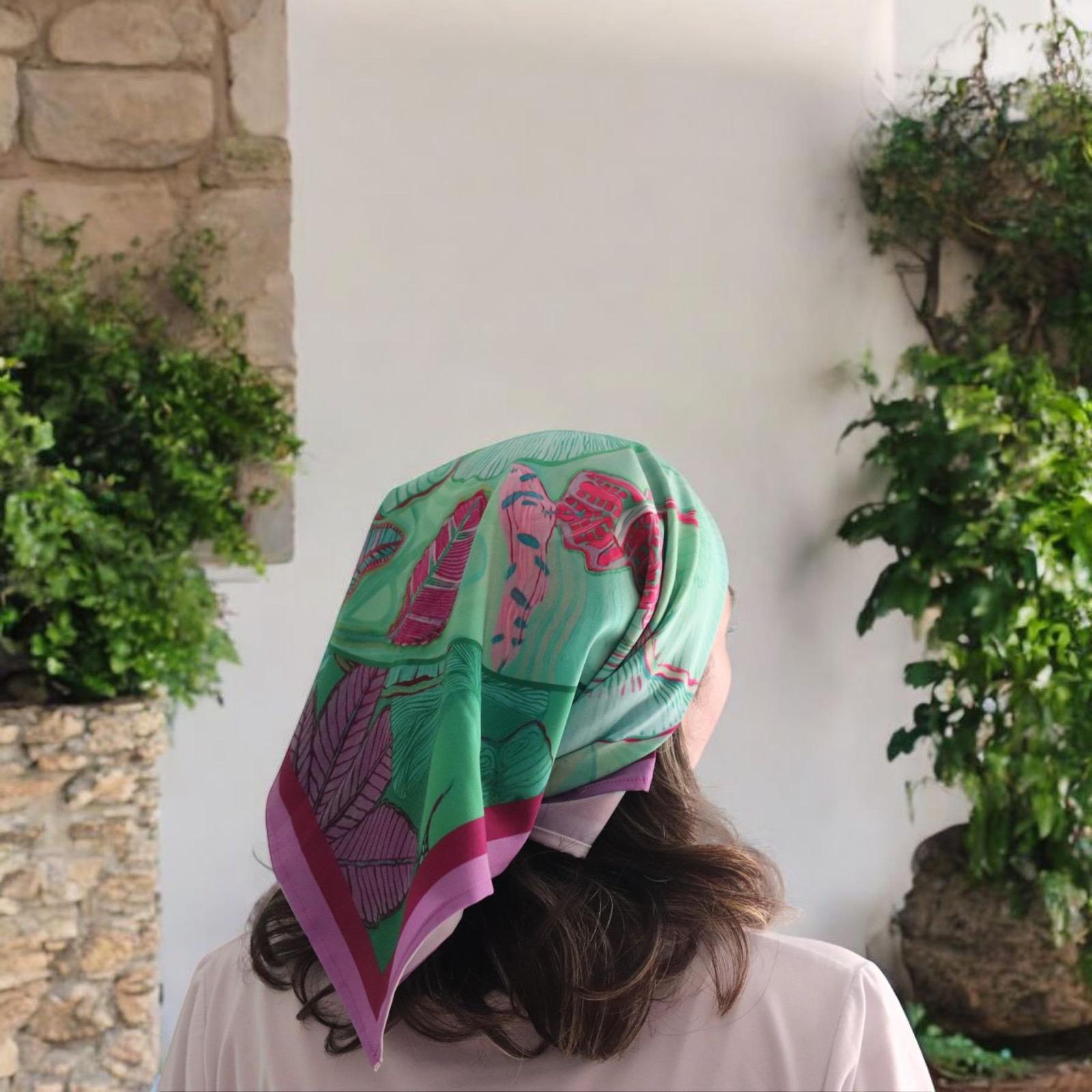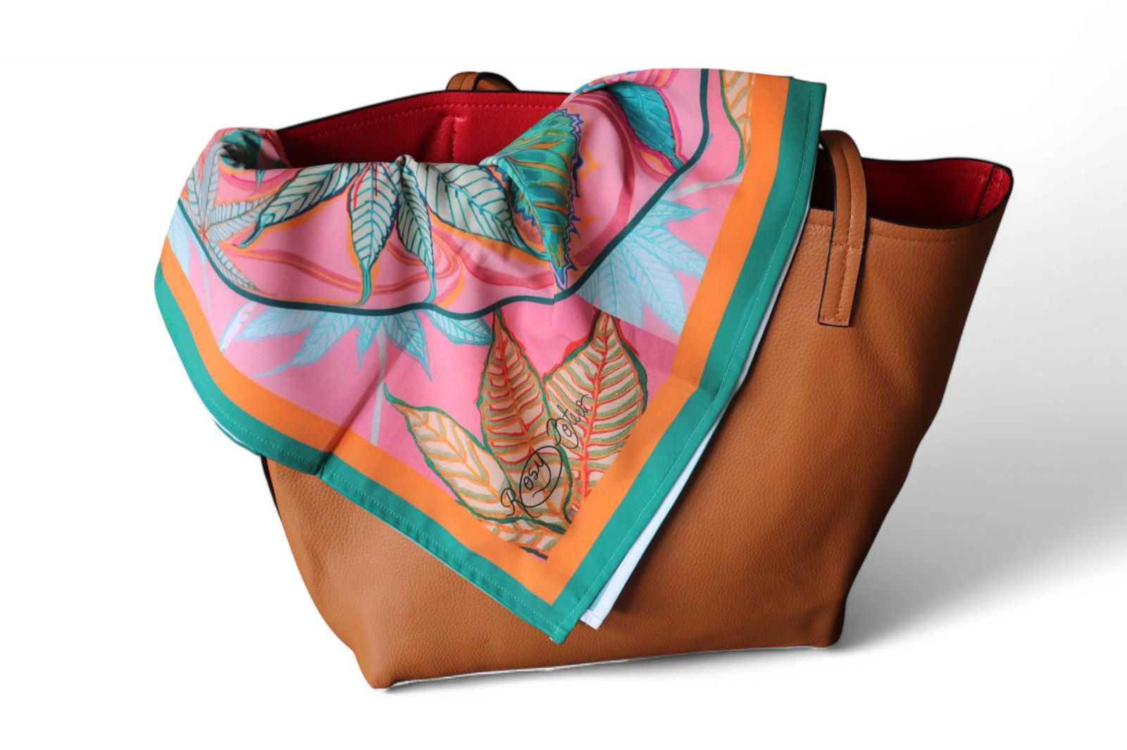 Este elegante pañuelo de 70x70cm está confeccionado en seda mango de alta calidad, con un diseño exclusivo Paisaje Rosa que evoca la belleza natural y aporta un toque romántico y sofisticado a tu estilo.