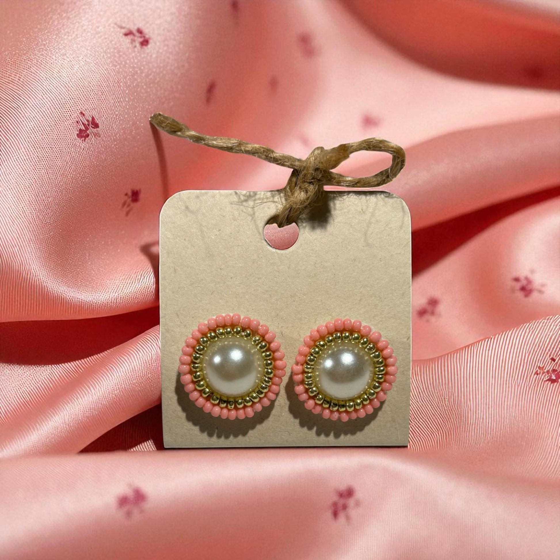 Estos elegantes pendientes topos están elaborados a mano con una perla central y delicado tejido en mostacilla de alta calidad. Disponibles en varios colores, son perfectos para cualquier ocasión.